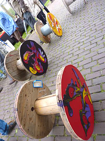 Presentatie van Erik's "Kunst Moet Rollen", tijdens kunstmarkt Tuindorp in Hengelo.