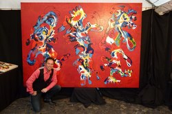 Kunstmeile in SchwerteSCHWERTE, 13.05.2012: Bereits zum siebten Mal fand die Kunstmeile zwischen den Fachwerkhäusern in der Mühlenstraße und in der Kötterbachstraße statt – eine heimelige Atmosphäre. 72 nationale und internationale Künstler stellten ihre Werke aus. Sie boten für jeden Kunstgeschmack etwas. Die Arbeiten von Erik Loman sind so farbenfroh, dass sie fast schon schreien. Dem Betrachter entlockt der Holländer so stets eine Reaktion. 'Oft müssen die Leute einfach lachen', sagt Loman. (Foto: Bernd Paulitschke)