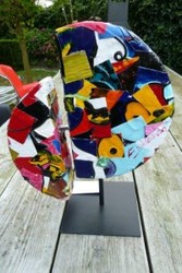 Erik doet, met 1 van zijn nieuwe objecten(Deel-Genoten), mee aan de Duurzame Veiling voor het WNF, op de Dutch Design Week 2012 in Eindhoven.(20t/m28 oktober) 100% van de opbrengst gaat naar WNF. Erik Loman – Deelgenoten Wat maakt dit object duurzaam? Vaak word er geschilderd en gebruikt men vele materialen die evt belastend zijn voor het milieu. Wegooien is dan bij kunstenaars veel aan de orde vele doeken worden vernietigd of naar de stort gebracht. Het zit hem niet alleen in de verspilling van de materialen maar ook van je eigen energie. Ik heb mijn doeken die niet goed waren of stuk gegaan zijn etc verknipt. Ik heb het gebruikt om alles losse delen van de werken weer nieuw werk van te maken nml objecten zoals jullie in de bijlage kunnen zien. Wat kun je vertellen over dit designobject? Het object is bedoeld om mensen te laten voelen en kijken en te ervaren wat je met "afdankertjes doet ", iets een nieuw leven inblazen is mijn gedachte. En probeer de gedachte van andere te doen glimlachen. Wat kun je vertellen over jezelf als designer? In mijn chaos en druk zijn in mijn hoofd loopt af en toe gelukkig een wekker af. De vele ideeën probeer ik te vertalen in werk. De strijd begint en ik probeer deze strijd steeds weet te winnen. www.erikloman.com Minimum bod: EUR 100,-